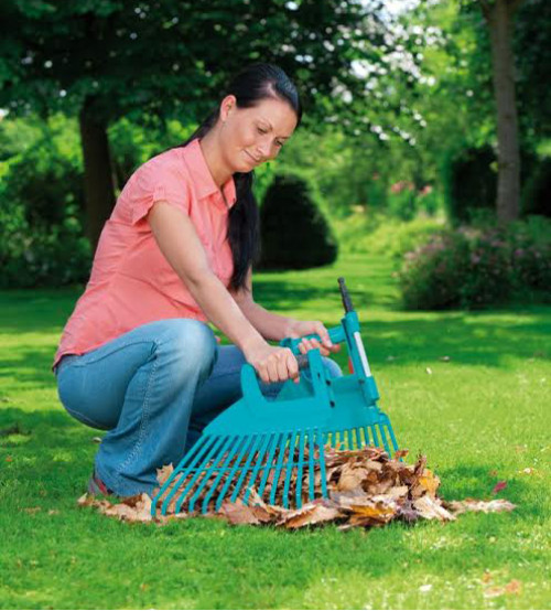 De bladhark kan eenvoudig in twee delen uiteen worden genomen om het bijeengeharkte materiaal op comfortabele wijze te verzamelen. In gesloten stand heeft de bladhark een breedte van 77 cm. Daarmee kunt in korte tijd veel werk doen.